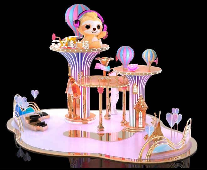 主景是音樂(lè)森林的中心,飛舞的熱氣 球帶著奇妙的夢(mèng)幻花朵正要起航,文 文迎接到訪的人們。還有美麗的音樂(lè) 船吹響著號(hào)角,慶祝節(jié)日的來(lái)臨。。